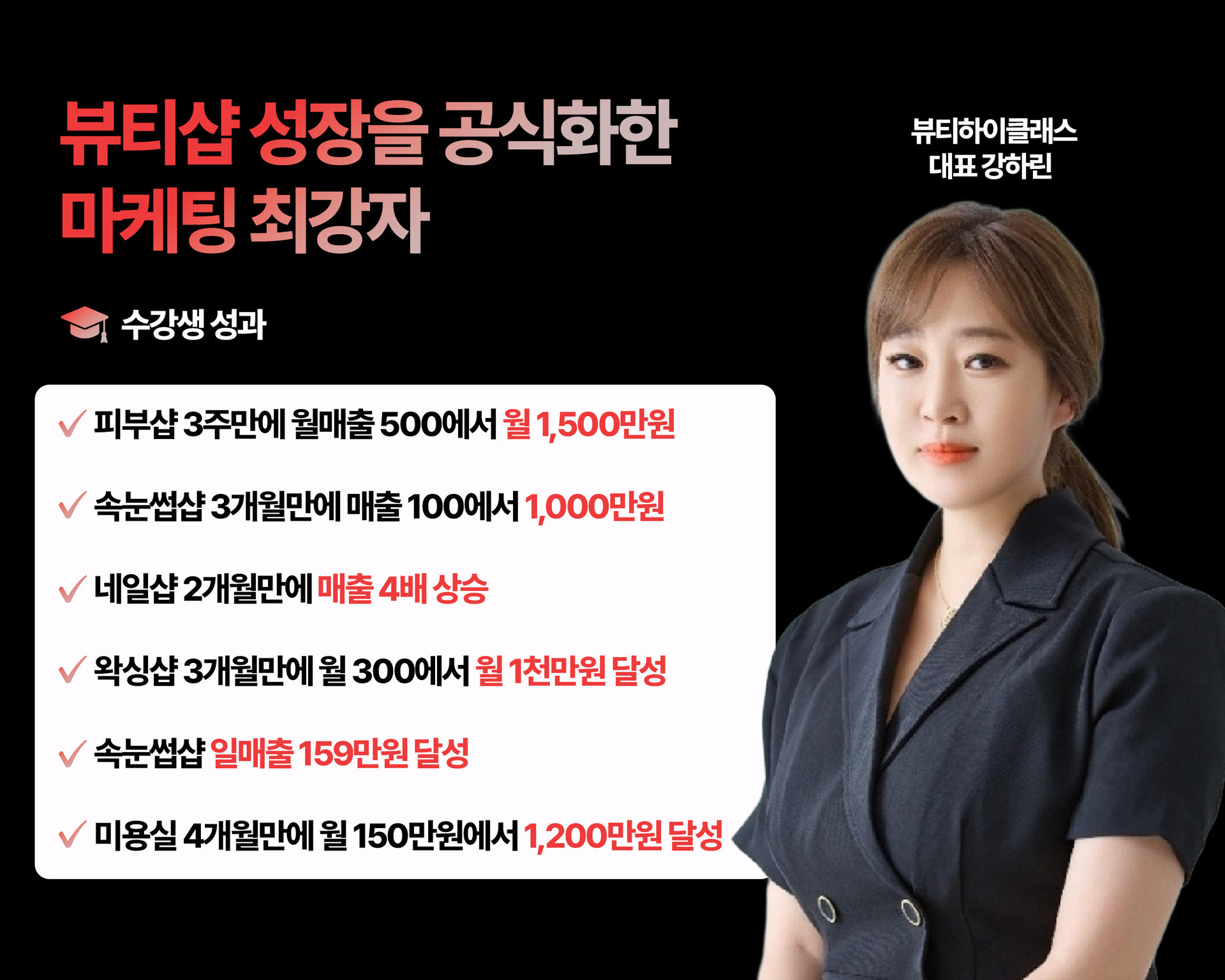✔ 수백 개 뷰티샵의 매출 전략을 연구하고 직접 성과를 만들어온