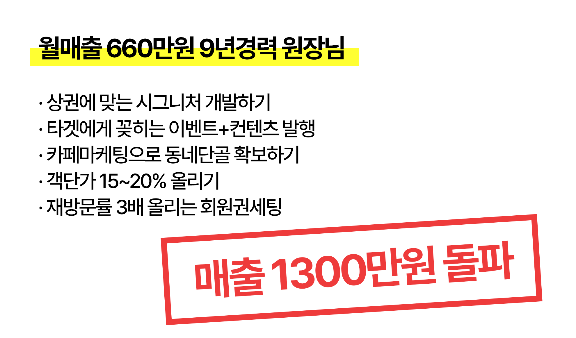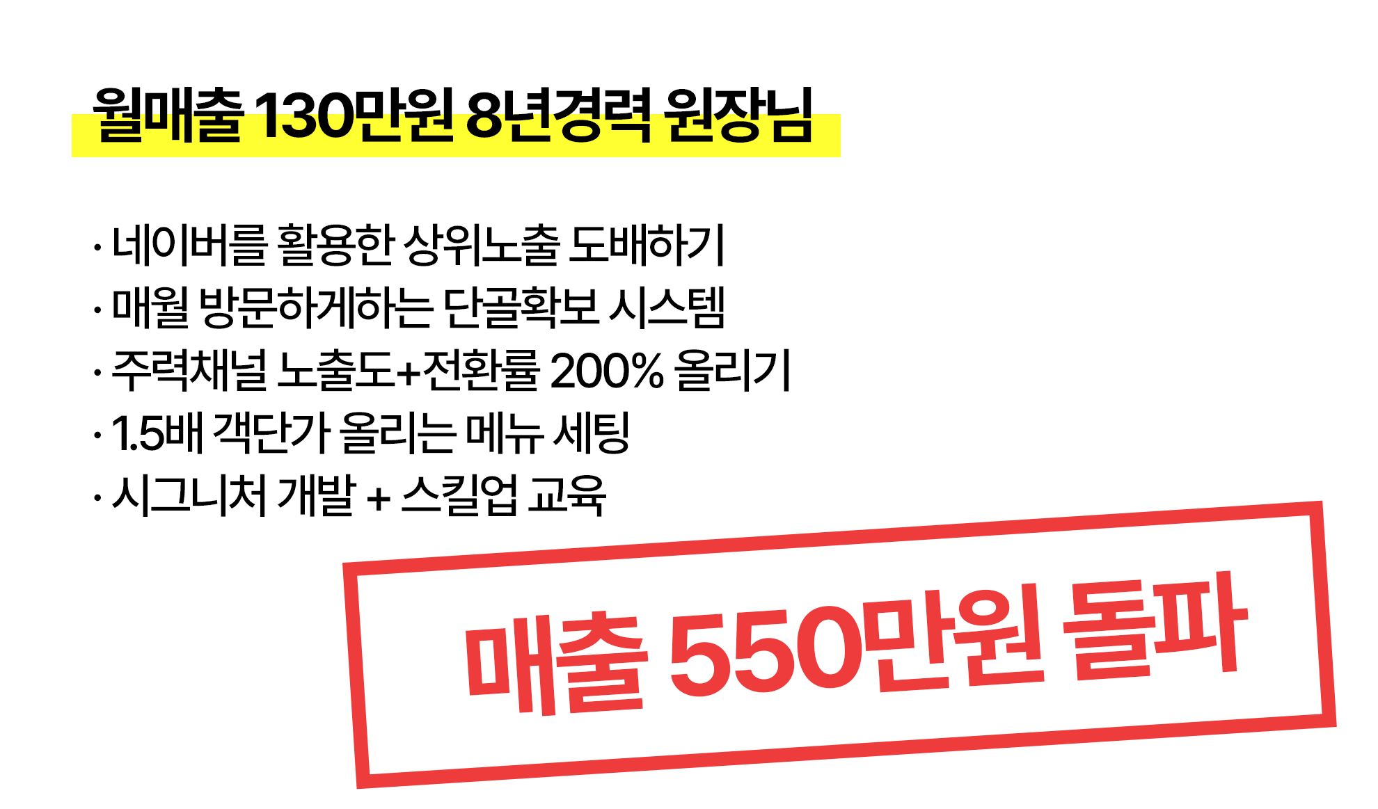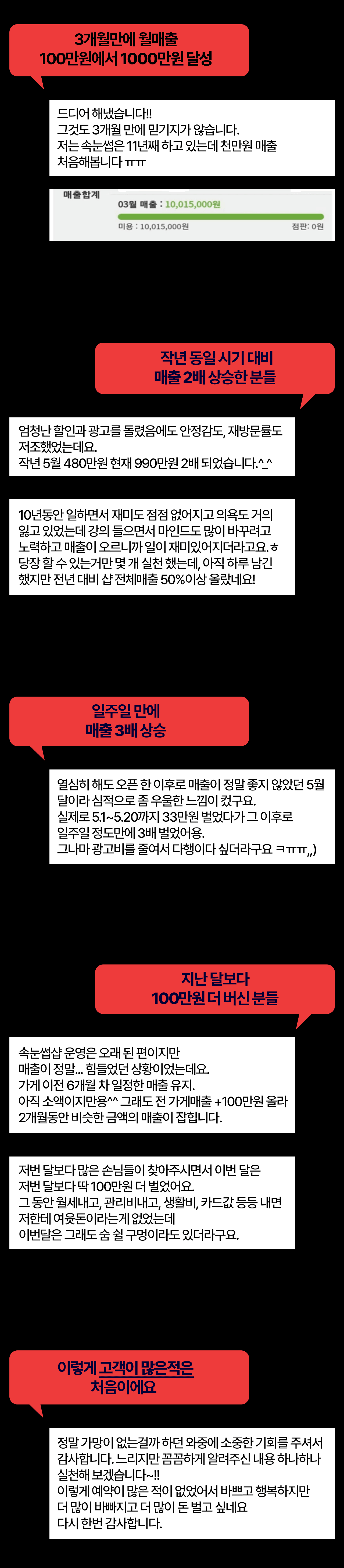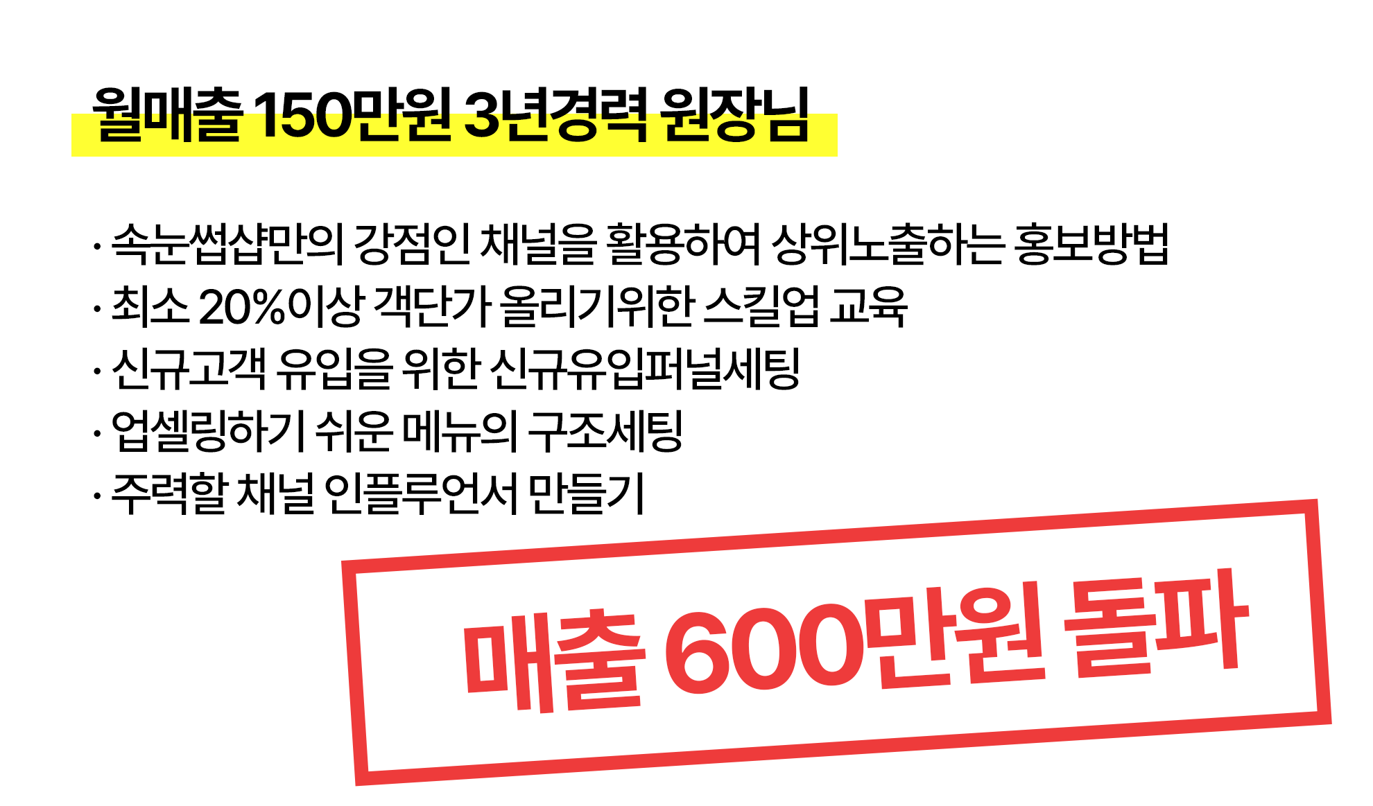 배움으로 끝내지 마세요.당신의 매출을 함께