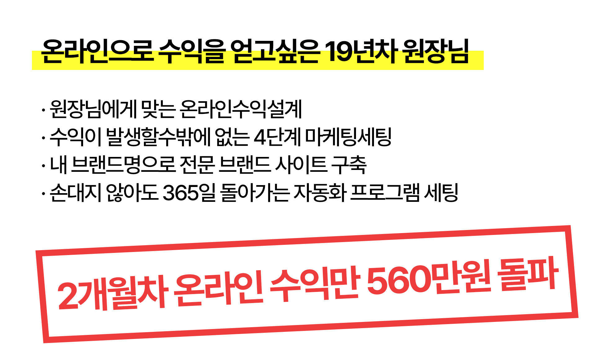 배움으로 끝내지 마세요.당신의 매출을 함께 만들어드립니다.